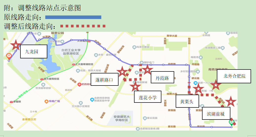 由于清潭路道路施工改造结束,为方便区内居民出行换乘。自2021年4月17日起,607路公交将优化线路走向。由原首末站新年新村公交站发车,经清潭路、紫云路、始信路、丹霞路、环翠路、容成路、九龙路,抵达首末站安大新区公交站。调整为:从首末站新年新村公交站发车,经清潭路、锦绣大道、始信路、丹霞路、莲花路、耕云路、蓬莱路、丹霞路、环翠路、容成路、九龙路,抵达首末站安大新区公交站。不再停靠布水站、沈河、邬郢、丹莲路口4个站点,增加停靠滨湖前城、北外合肥院、黄栗头、丹霞路、莲花小学、蓬耕路口、九龙园7个站点。请各位乘客互相转告就近选择乘车站点,谢谢!