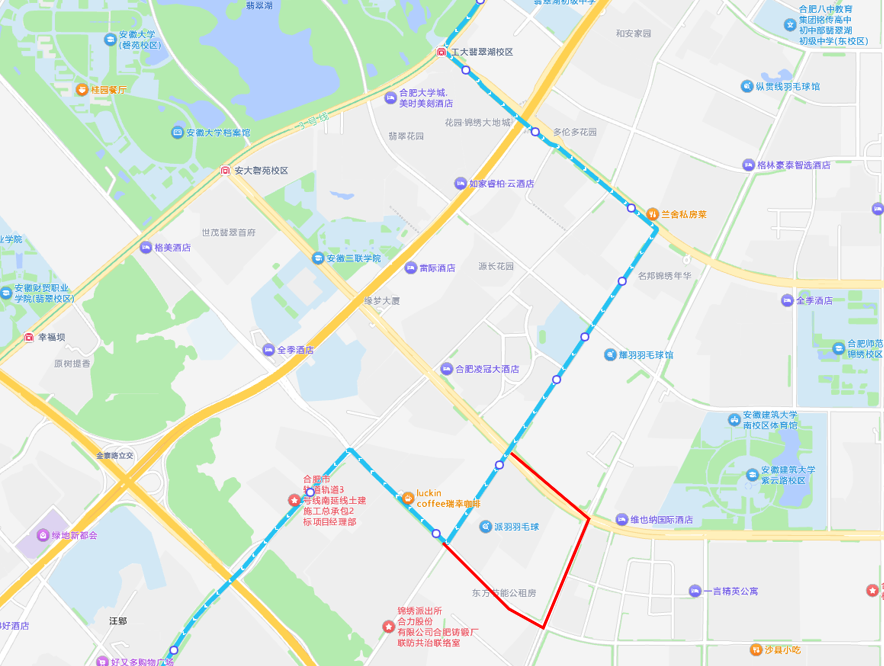 因合掌路施工,2025年10月25日起,604路公交将临时调整线路走向。604线路由合掌路→汤口路→青龙潭路调整为合掌路→紫云路→蓬莱路→汤口路→青龙潭路,新增紫合路口、蓬紫路口、蓬莱路等站点,不再停靠紫合路口、汤合路口站点。请各位乘客互相转告就近选择乘车站点,谢谢!