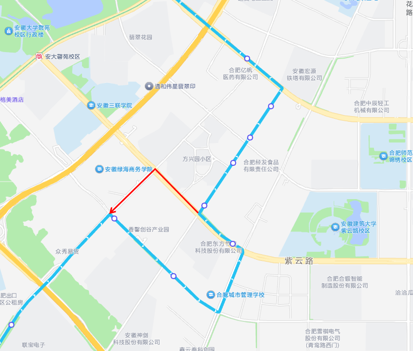 因道路施工,2026年4月7日起,604路公交将恢复部分线路走向。604线路由合掌路→紫云路→蓬莱路→汤口路→青龙潭路调整为合掌路→紫云路→青龙潭路,云谷路直行调整为云谷路→蓬莱路→紫石路→青鸾路→云谷路,新增青汤路口、青龙潭路口、云青路口东等站点,不再停靠蓬莱路、汤合路口、安徽华润医药等站点。夏季首末班时间调整为6:00-20:40,冬季不变。请各位乘客互相转告就近选择乘车站点,谢谢!