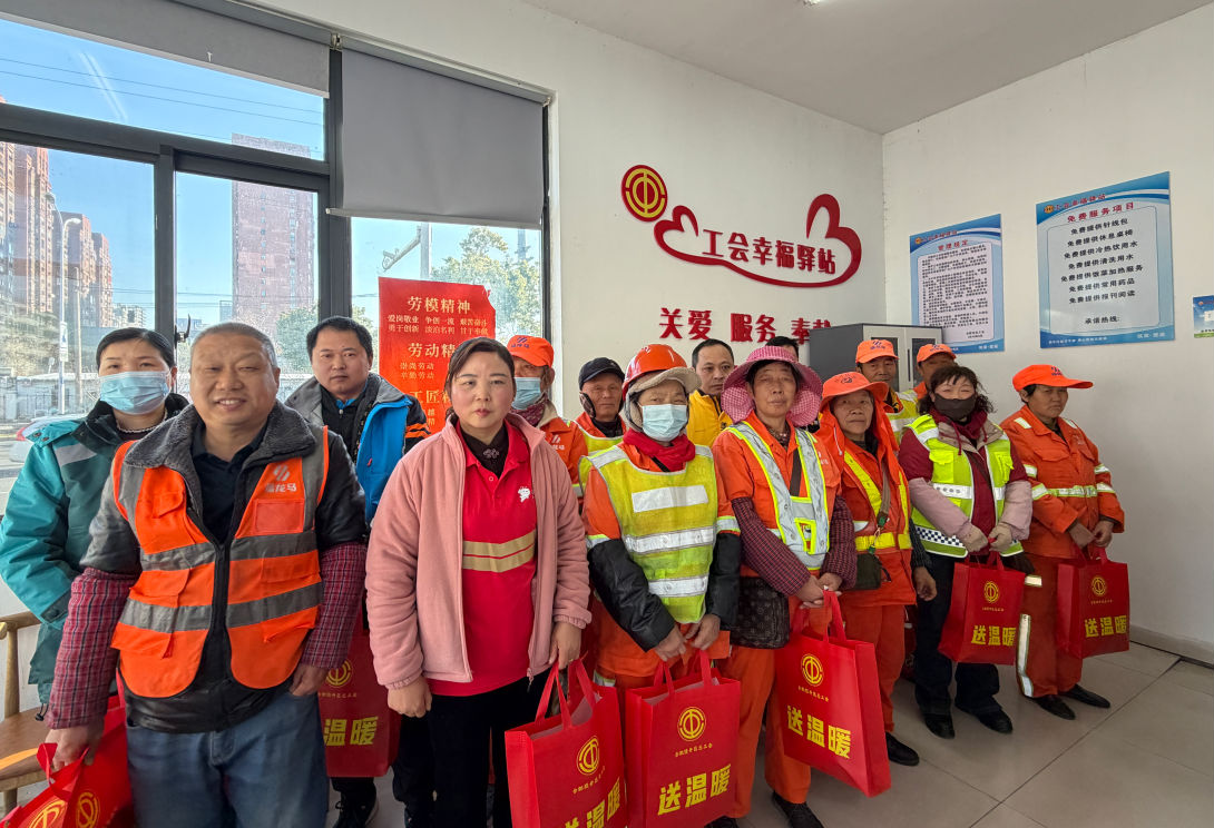 12月26日上午,经开公交“冬日送温暖”活动在清潭路幸福驿站开展,向坚守在寒风中的环卫工人、外卖员、快递员等户外工作者送上关怀。