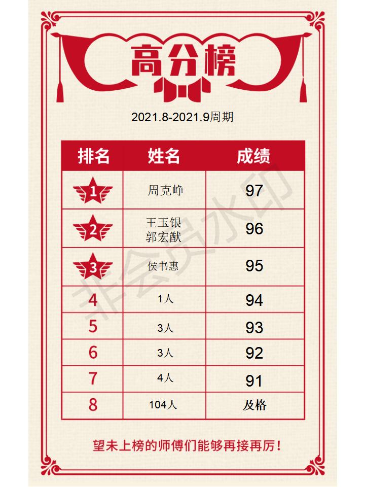2021.8-2021.9周期高星级考试高分榜